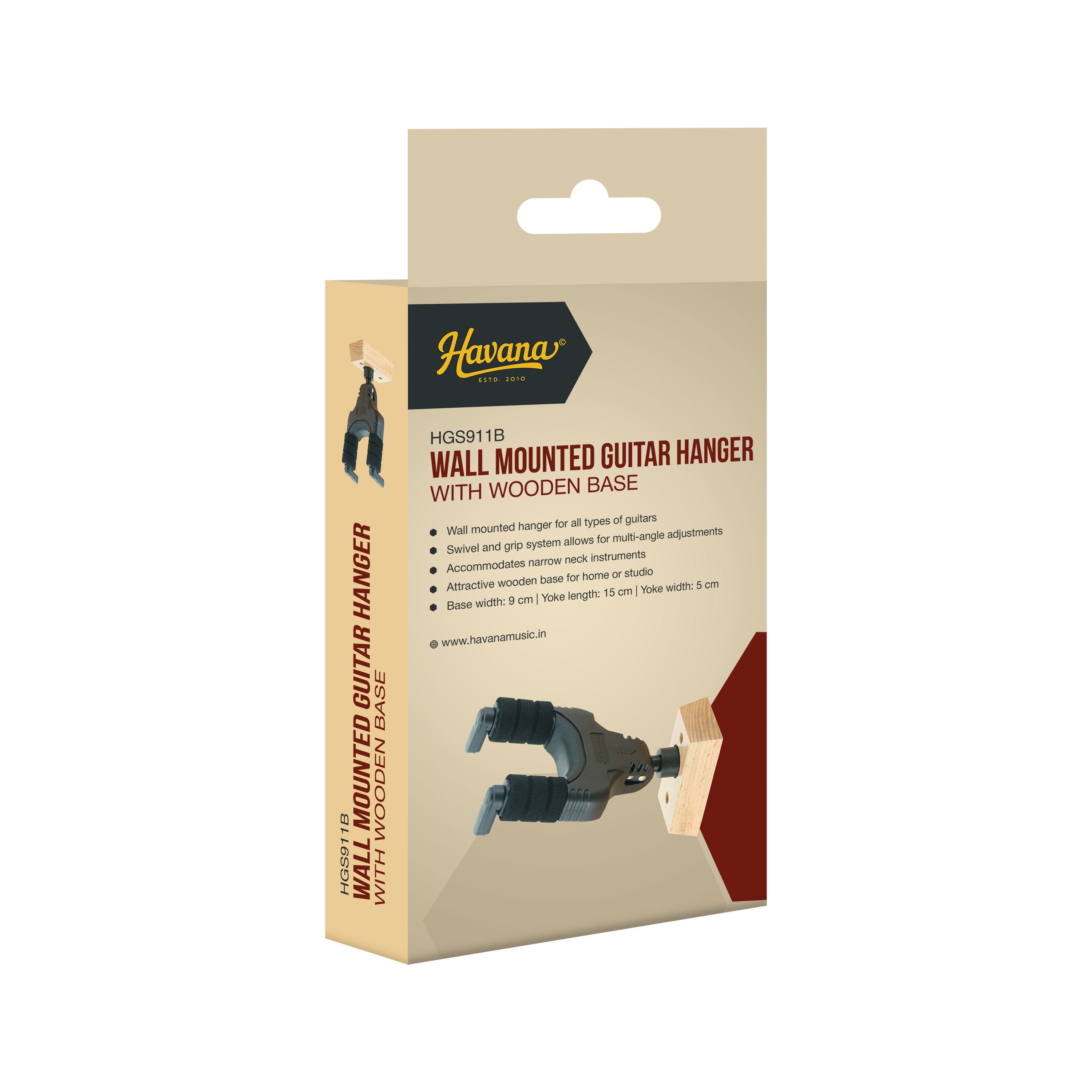 The Havana HGS911B combines secure protection with elegant style. Its self-locking yoke and EVA padding keep your guitar safe, while the swivel and grip system adjusts to fit different necks and angles. Finished with a polished wooden base, it’s the perfect wall hanger for your home or studio.