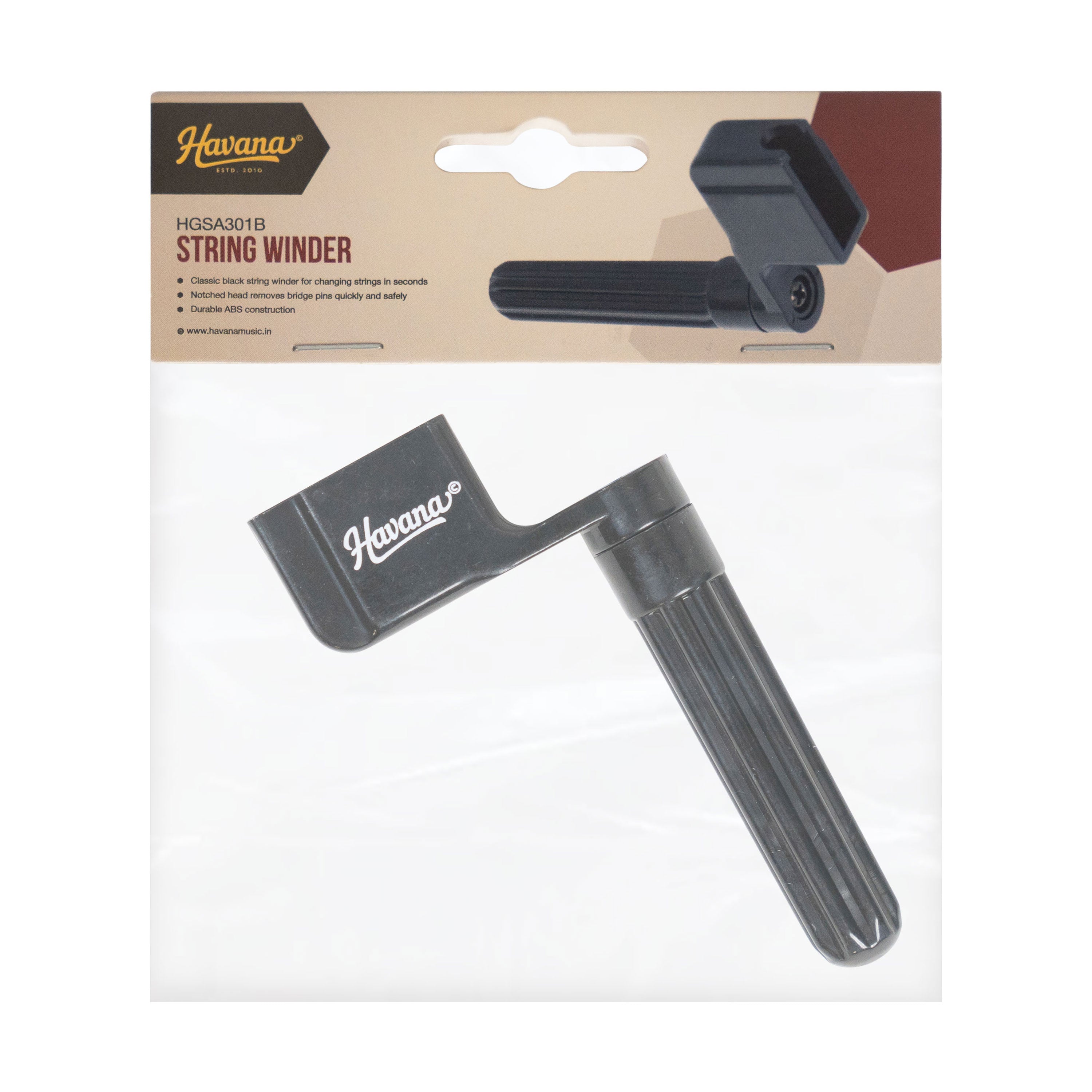 Re-string your guitar in seconds with the Havana HGSA301B. This classic black string winder makes string changes fast and hassle-free, while the notched head removes bridge pins safely. Made from durable ABS, it’s a must-have tool for every guitarist.