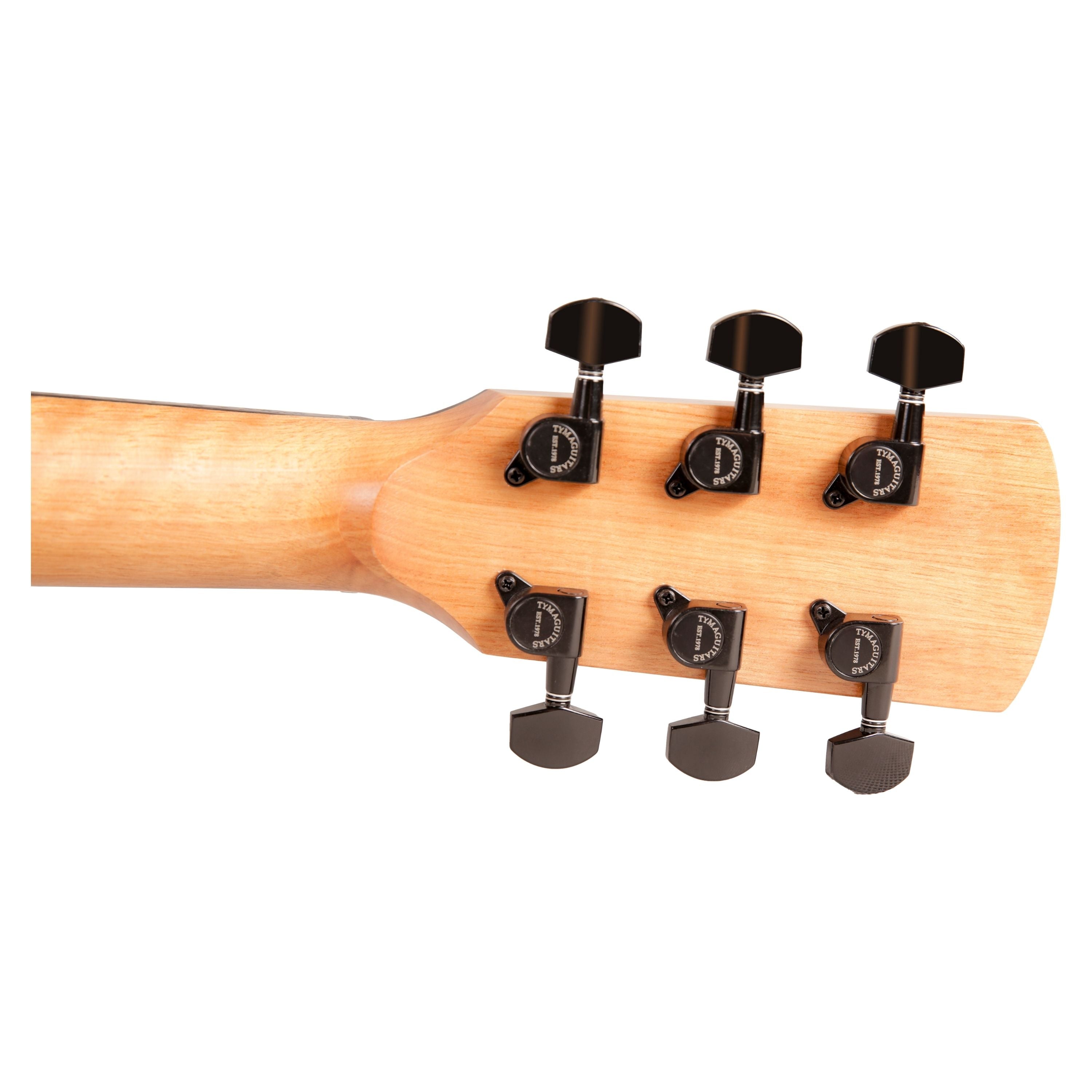 Constructed with a Sitka Spruce top and Sapele back and sides, the TG-1 delivers a classic acoustic voice: bright, clear highs supported by a warm, woody midrange. To ensure this guitar can withstand the rigors of learning and travel, Tyma uses Tech Ebony for the fretboard and bridge. This high-density composite material is smoother than grain wood and highly resistant to humidity and temperature changes, ensuring your guitar stays unparalleled in playability.